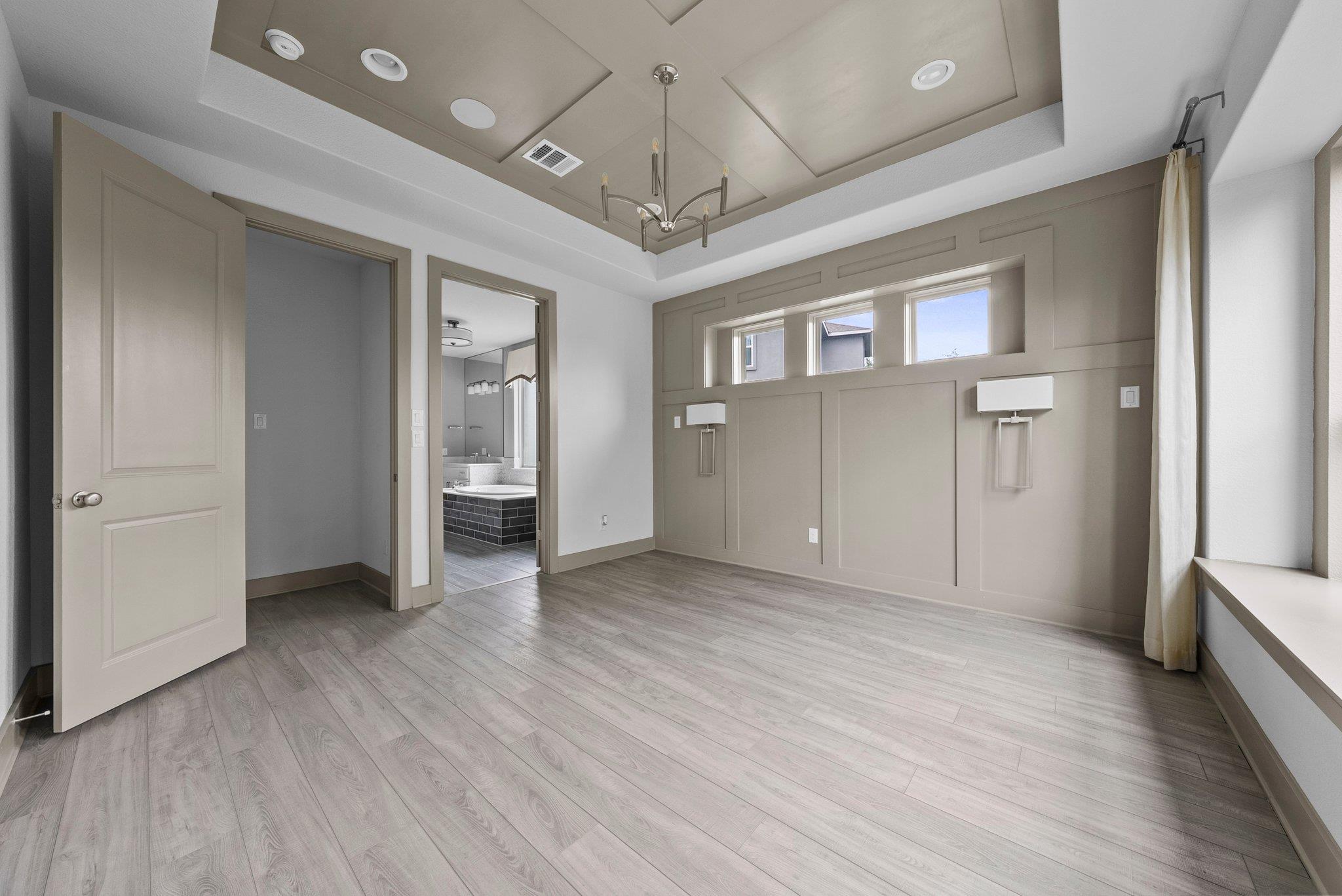 Upstairs, the spacious game room offers built-in desk space, creative accents, and all the flexibility you need--whether that's movie nights, work-from-home, or everything in between. The primary suite is a true standout, featuring elegant tray ceilings, paneled walls, and a sleek designer light fixture that ties it all together.